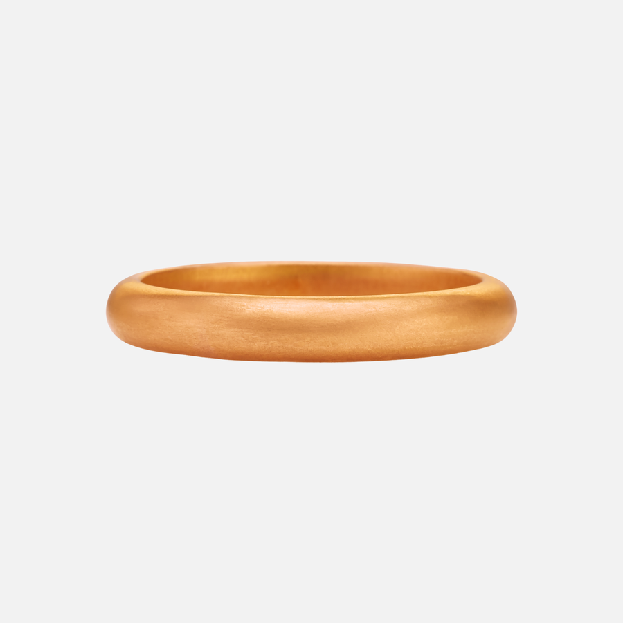 The "Half Round" is round on the outside and flat on the inside, a traditional design that has become a signature style for Reinstein Ross. Organic yet beautifully balanced, this design is often purchased as a wedding band or stacking ring.