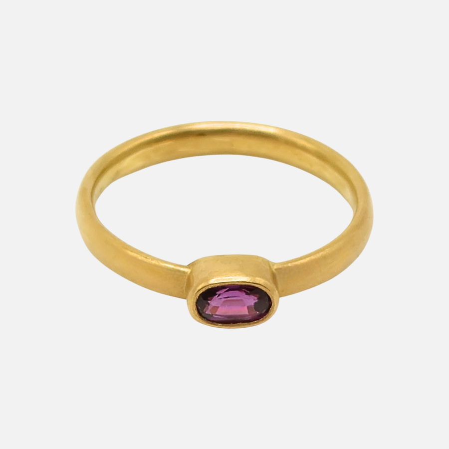 Sonoma Mini Oval Dark Purple Sapphire Ring in 20K Peach Gold