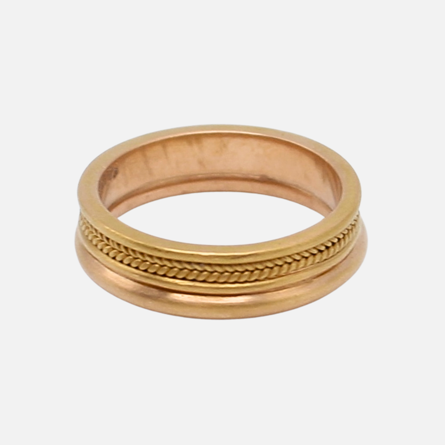Hitched Narrow Braid and Half Moon Band in 22K Apricot Gold- 6mm