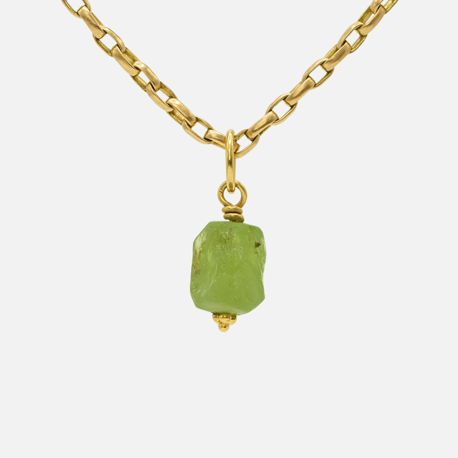 Tania Rough Peridot Pendant in 20K Peach Gold