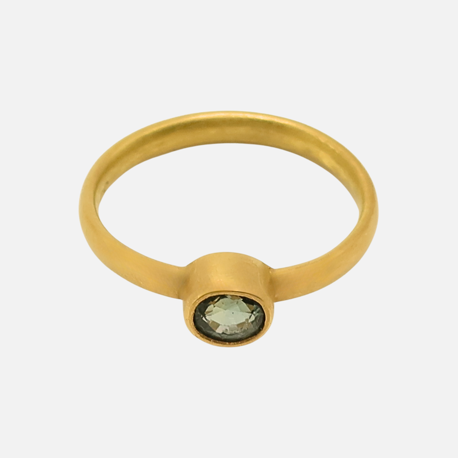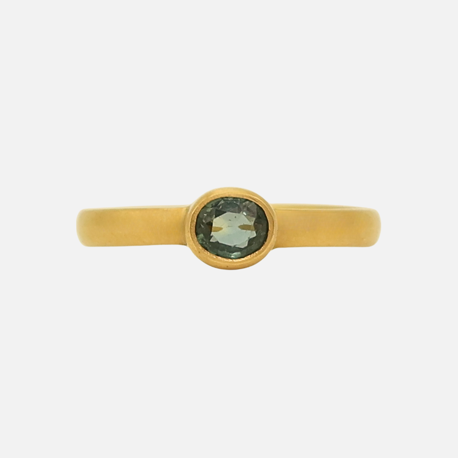 Sonoma Mini Oval Teal Sapphire Ring in 20K Peach Gold