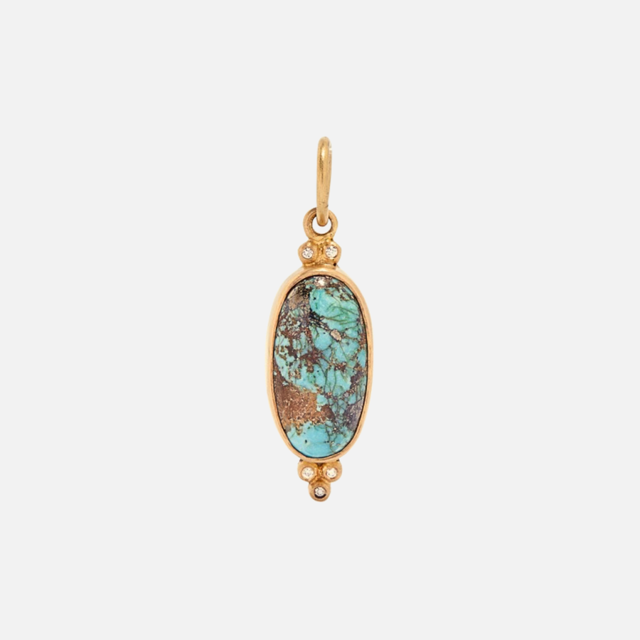 Tania Turquoise and Diamond Granule Pendant in 20K Peach Gold
