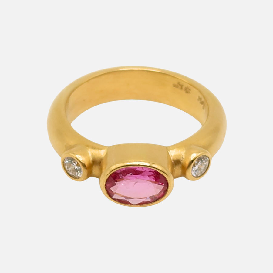 Half Round "Nina" Oval Pink Sapphire Diamond Ring in 20K Peach Gold