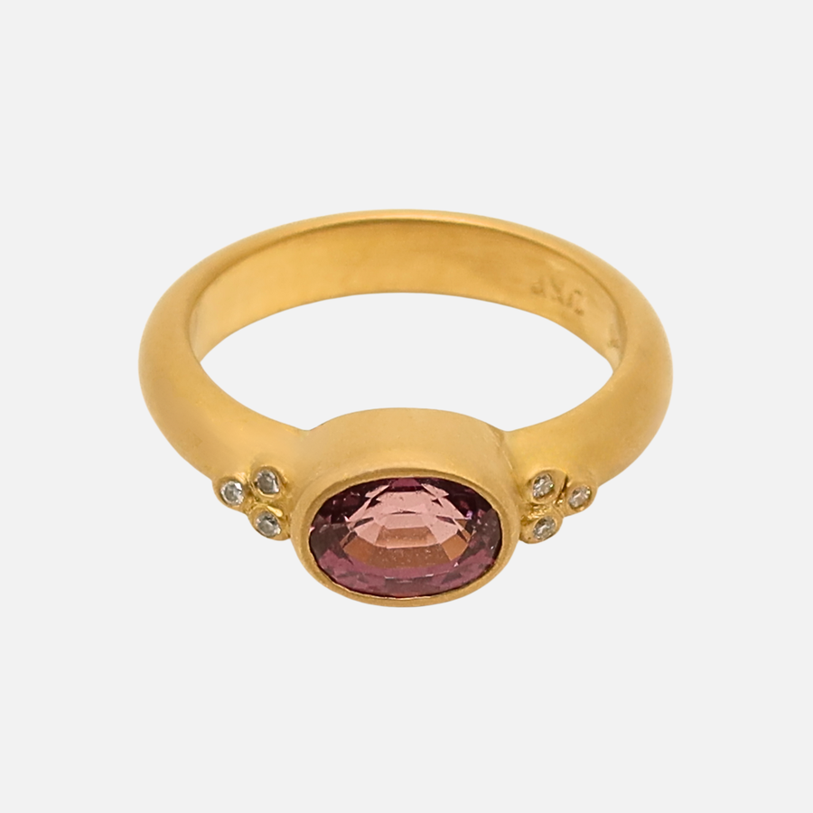 Tania Oval Dark Pink Sapphire and Diamond Ring in 20K Peach Gold