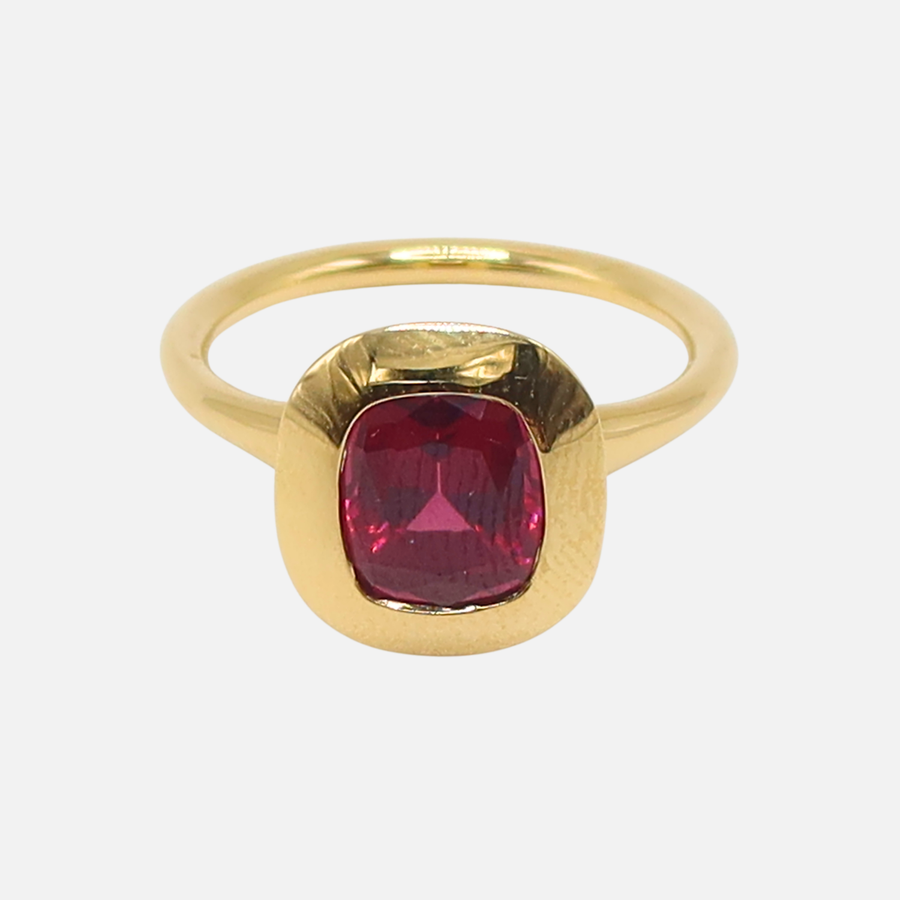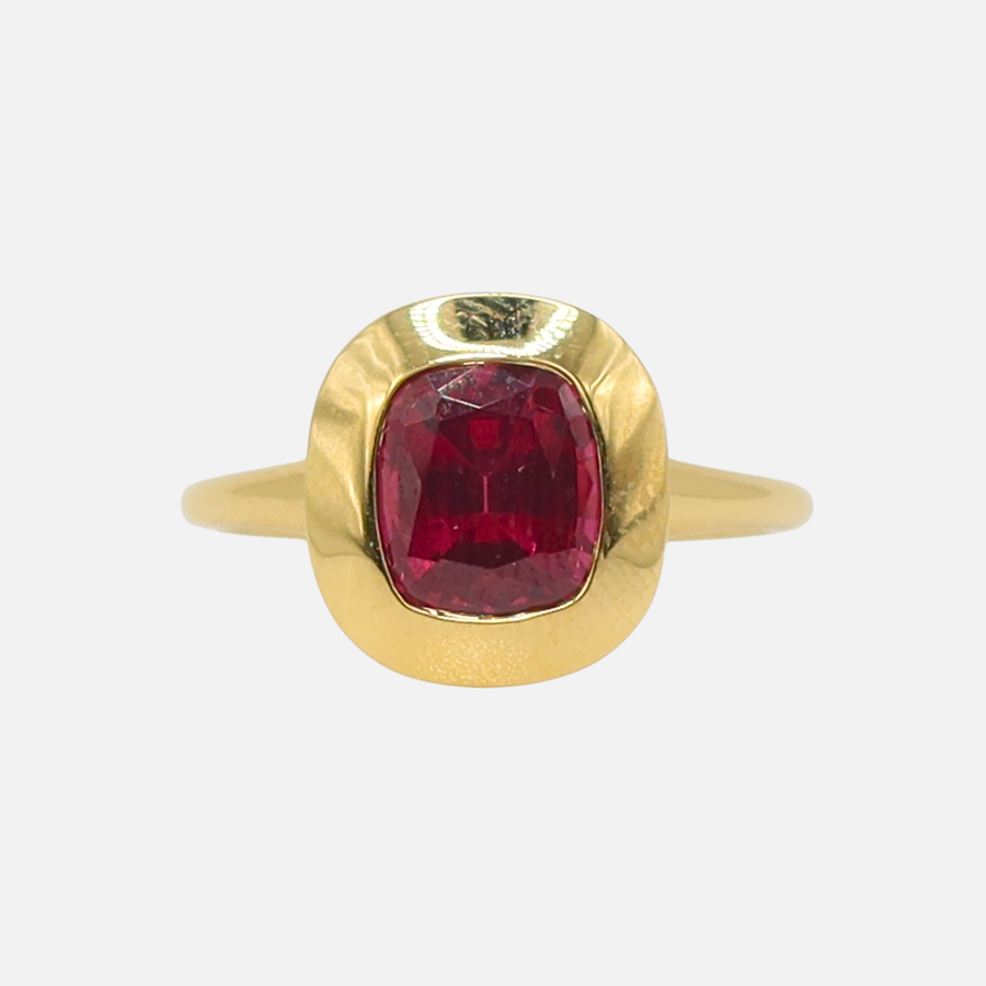 The Duomo Dark Pink Tourmaline Ring showcases a striking dark pink tourmaline set in 18K yellow gold, combining rich color with refined workmanship. This piece balances contemporary design with timeless elegance, making it suitable for both everyday wear and special occasions. The warm tone of 18K yellow gold complements the depth of the tourmaline, creating a sophisticated aesthetic that appeals to collectors and those seeking distinctive fine jewelry. Each ring is carefully crafted to ensure durability and lasting beauty.